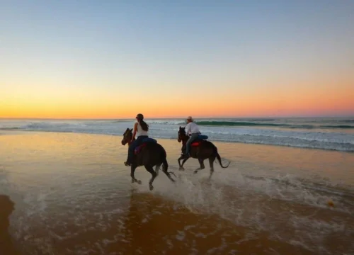 After crossing the desert, the trail leads you to the shores of the Red Sea, where your horse will gracefully stride along the water’s edge. This is your chance to enjoy the beauty of the sea, its gentle breeze, and even the unique experience of swimming with your horse in the turquoise waters. Capture unforgettable photos as you ride during sunrise—when the sky glitters with soft golden hues—or at sunset, when the sea and desert shimmer with warm, romantic light.