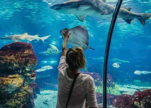 The highlight of the visit is walking through the glass tunnel, where you’ll enjoy a 360-degree panoramic view of sharks, stingrays, and colorful fish gliding above and around you. This immersive experience allows you to feel like you’re truly under the sea.