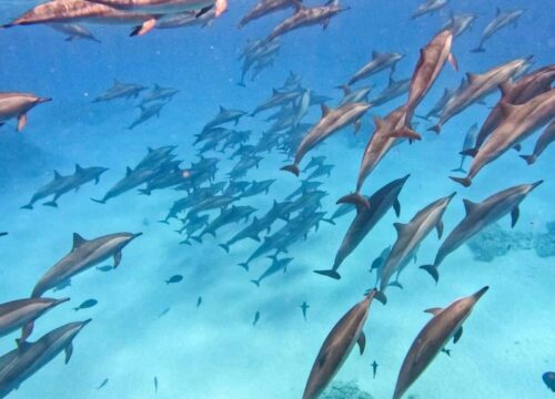 - First stop – Dolphin Bay (1 hour of swimming) 🐬