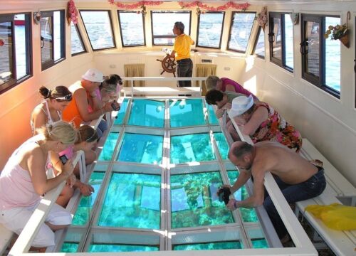 Once on board, you’ll glide over stunning coral reefs teeming with vibrant marine life, offering a unique view of the underwater world through the glass bottom. Marvel at the colorful fish and breathtaking sea views as you explore the wonders beneath the surface.